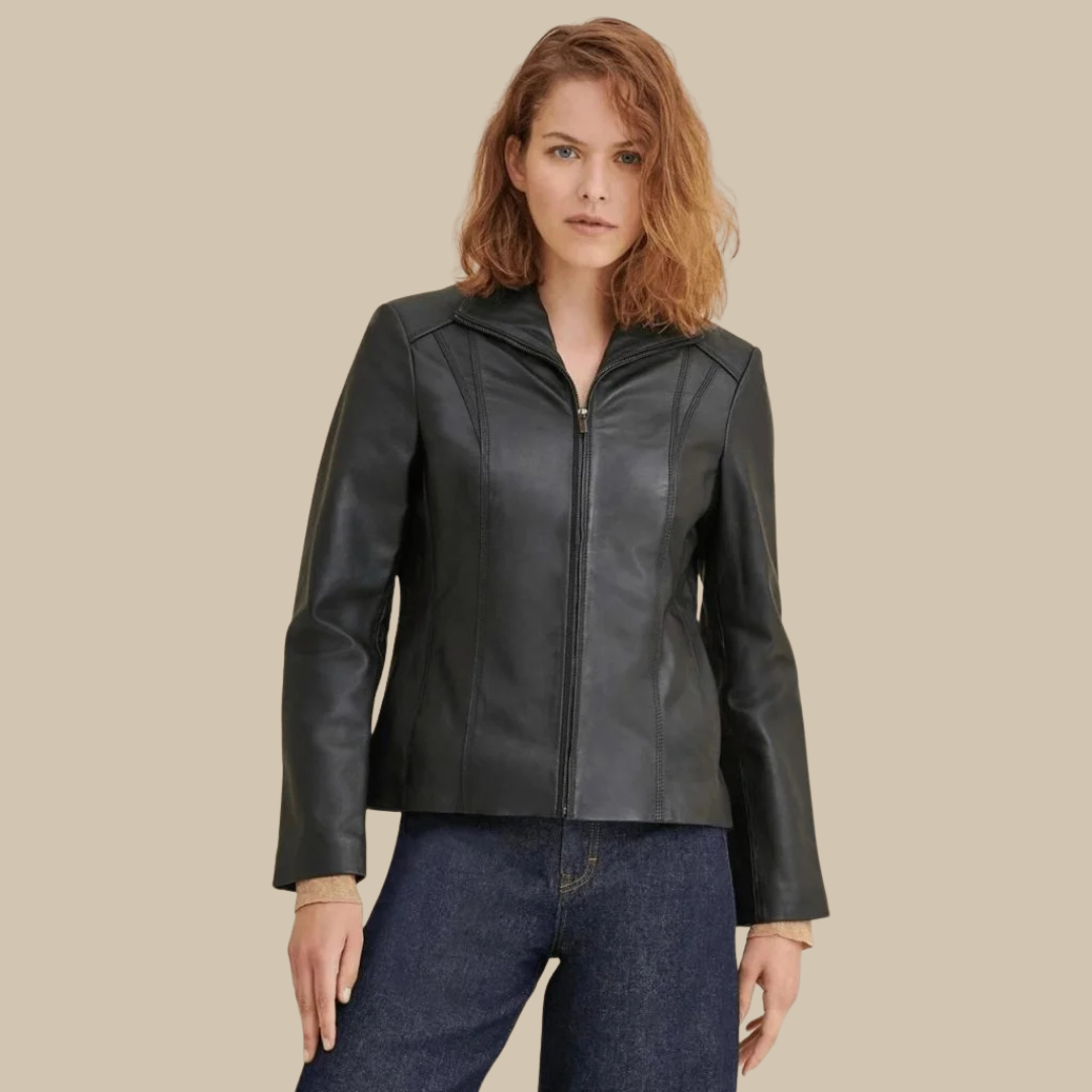 Turn heads with our Women’s Black Fitted Leather Jacket, a sleek and modern design that blends timeless elegance with everyday versatility. Crafted from 100% genuine full-grain leather, this jacket offers a slim tailored fit that flatters the figure while maintaining comfort and durability.